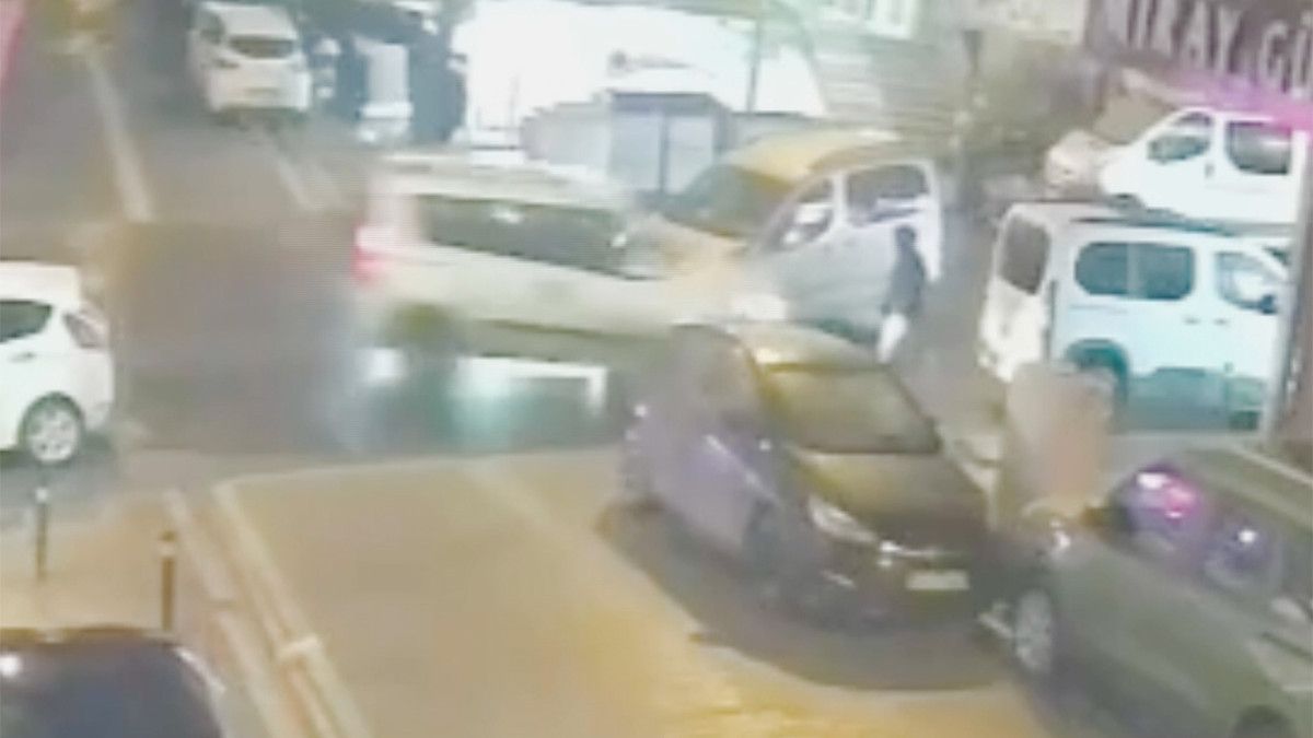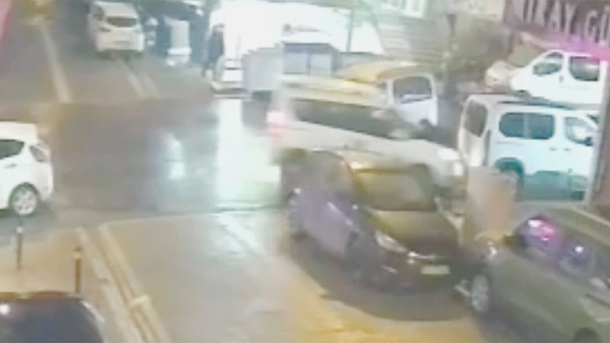 İstanbul’un Esenyurt ilçesi Hacı Bayram Veli Caddesi’nde hafif ticari araç sürücüsü sokağa girmek için manevra yaptı.