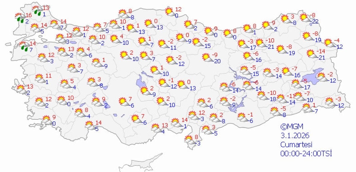 Yurdun birçok noktasında etkisini gösteren kar yağışı ise bugün ara verecek. Ancak yarın yağışların etkisini arttırması bekleniyor. Yağışların ardından ise kuvvetli buzlanma ve don bekleniyor.