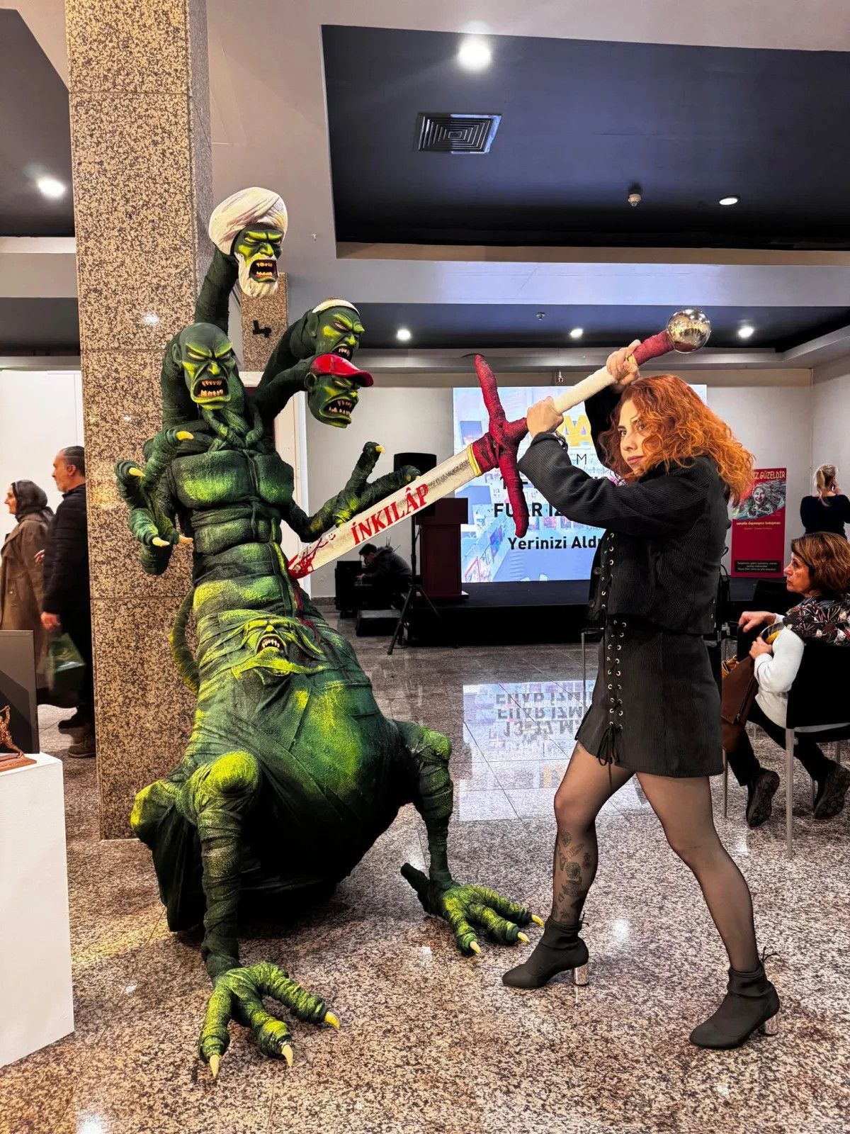 İstanbul Cumhuriyet Başsavcılığınca, Lütfi Kırdar Uluslararası Kongre ve Sergi Sarayında düzenlenen fuarda, aralarında sarıklı ve sakallı insan başı figürünün de bulunduğu 4 başlı canavarı tasvir eden heykel sergilendiği, buna bağlı olarak Müslümanlığın ve dini değerlerin hedef alındığının belirlenmesi üzerine soruşturma başlatıldı.
