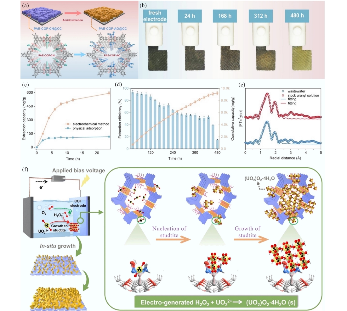 Araştırmada öne çıkan yenilik, çift işlevli bir elektrot tasarımı. Karbon kumaş destek üzerine doğrudan büyütülen COF elektrot, bağlayıcı içermeyen ve yüksek katalizör-destek entegrasyonuna sahip sağlam bir yapı sunuyor. Elektrot, özel yapısı sayesinde hidrojen peroksit üreterek uranyumun çökelmesini destekliyor ve uranyum iyonlarını seçici şekilde yakalıyor. Böylece kimyasal ve elektrokimyasal süreçler uyum içinde çalışıyor ve geri kazanım çok daha hızlı gerçekleşiyor.