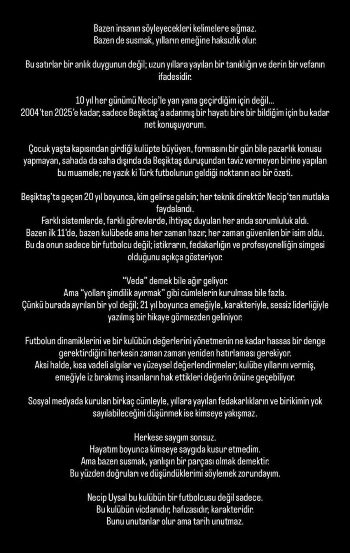 2004’ten 2025’e kadar, sadece Beşiktaş’a adanmış bir hayatı bire bir bildiğim için bu kadar net konuşuyorum.