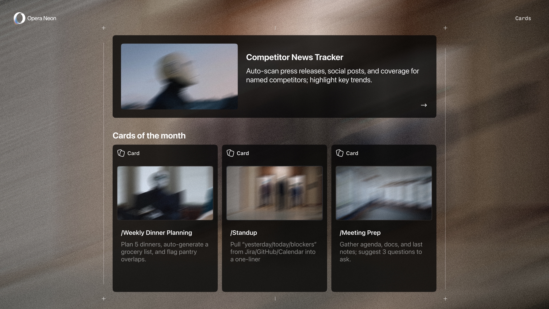 Opera Neon, özellikle yapay zeka meraklıları ve ileri seviye kullanıcılar için tasarlanmış bir tarayıcı. Geleneksel tarayıcılardan farklı olarak yapay zeka ajanları üzerinden kullanıcılar adına görevler gerçekleştirebiliyor ve web uygulamaları geliştirebiliyor.