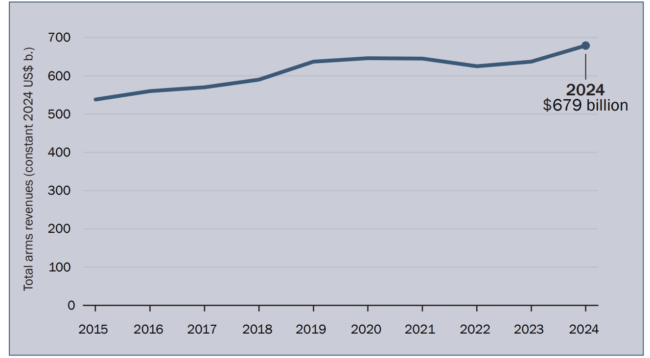 Genel olarak 2024’te savunma sektöründeki ilk 100 şirketin silah ve askeri hizmet satışları bir önceki yıla göre yüzde 5,9 artışla 679 milyar dolara yükselerek rekor seviyeye ulaştı. Satışlardaki artışlar, Ukrayna’daki savaş, İsrail’in Gazze operasyonları ve küresel jeopolitik gerilimlerin yanı sıra artan askeri harcamalardan kaynaklandı. Bu yükselişin büyük kısmı Avrupa ve ABD merkezli şirketlerden geldi.
