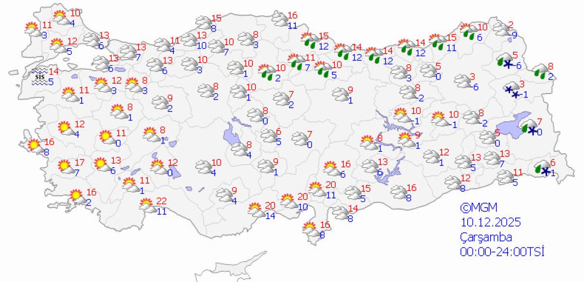 MGM haritalarına göre, Marmara ve Karadeniz’in iç bölgelerinde yer yer yağmur beklenirken, Ege kıyılarında sağanaklar etkili olabilir.